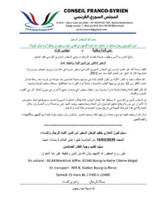 ينعي المجلس السوري الفرنسي ببالغ الحزن والأسى وبلقوب مؤمنة بقضاء الله وقدره، فقيد الوطن السفير الدكتور نور الدين اللباد وشقيقه عماد اللباد، في مدينة الصنمين بمحافظة درعا جنوب سوريا.
